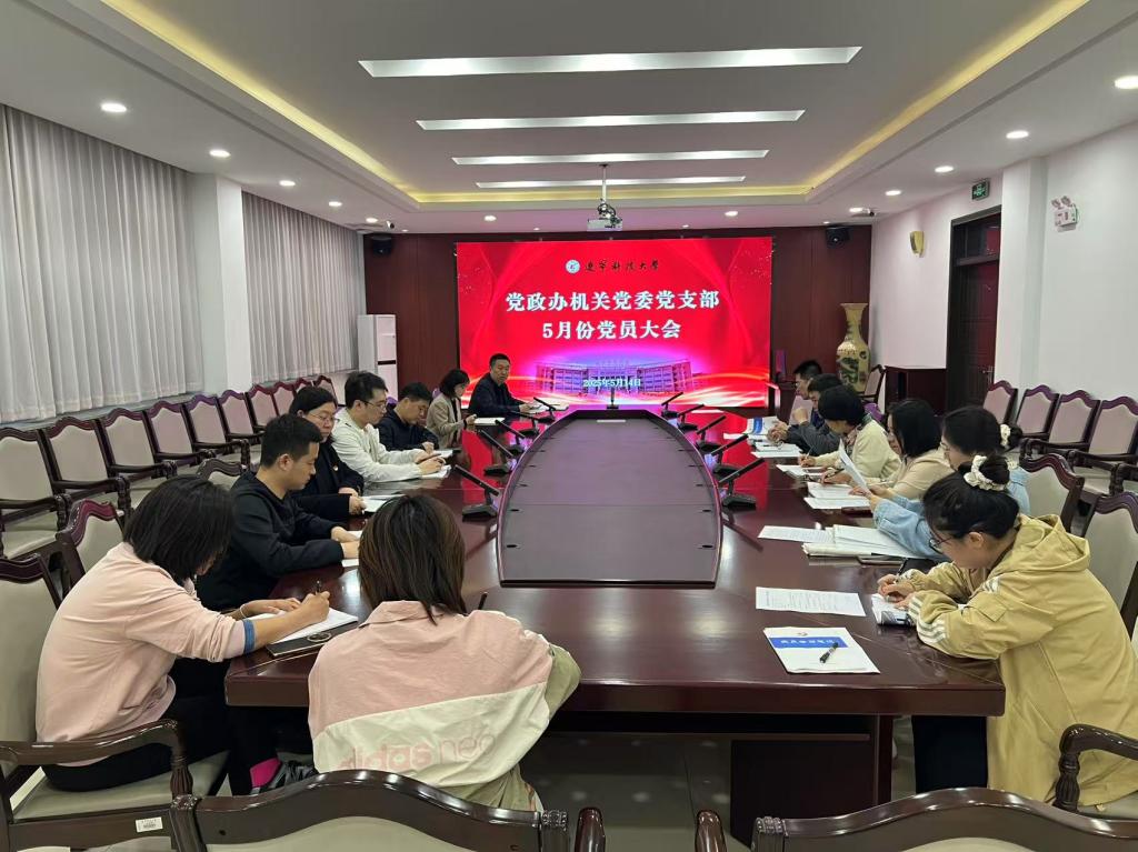 5月14日下午,党政办机关党委党支部在机关楼120(东)会议室召开党员大会,开展集体学习。党支部书记李宁主持会议。