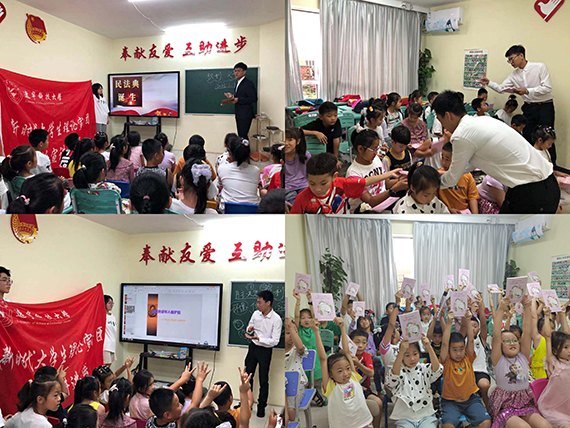 8月18日,米兰新时代大学生理论宣讲团走进鞍山市高新区乐道社区,面向社区居民及小学生宣讲《中华人民共和国民法典》和《中华人民共和国未成年人保护法》。宣讲团成员经济与法律学院学生白钰仟详细介绍了《民法典》中有关未成年人权益保护的财产权利、家庭权利、自由和人格尊严的部分内容,并以案例讲解的形式着重宣讲了《民法典》新增亮点。宣讲团成员经济与法律学院学生王圣傑结合生活中的实际案例讲解了《未成年人保护法》相关法律知识,强调了家庭、学校、社会在未成年人保护方面应承担的责任和义务,也使小朋友们更加清楚地了解自己享有哪些权利,掌握正确保护自身权益的方式方法。宣讲员宣讲内容贴近生活,图文并茂、生动有趣,与现场的小朋友们频繁互动,赢得了阵阵掌声,并将《中华人民共和国未成年人保护法》送到小朋友们手中。