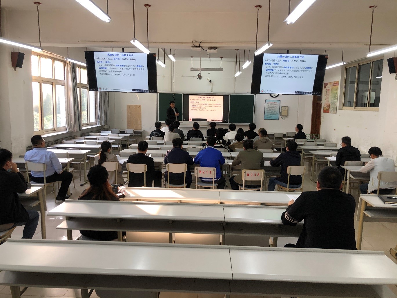 教研活动中,学院能动系和材控系青年教师王连钰、任廷栋分别对传热学、材料科学基础2门课程进行了教学展示。副院长(主持行政工作)艾新港和多名骨干教师对两名教师的授课给予肯定,并就听课内容与他们进行了交流。教学经验丰富的井玉安和冯亮花教授分别以自己多年的授课经历,对两名教师的授课给予指导和经验传授。