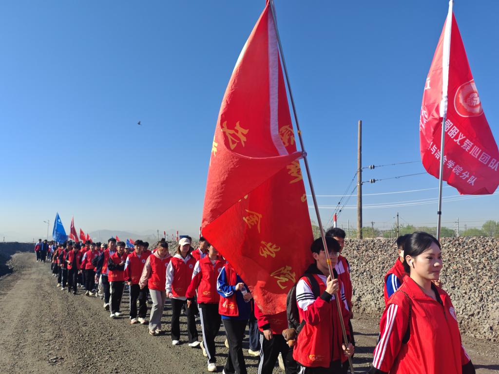 4月26日,米兰联合鞍山市第二中学及郭明义爱心团队的志愿者,在鞍钢齐大山铁矿公路采石场开展“大手拉小手,跟着郭明义重走矿山路”主题教育活动。材料与冶金学院师生代表积极参与活动。