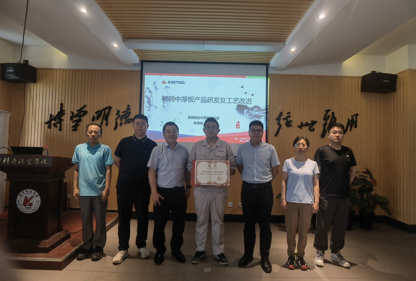 徐工讲授的主题为鞍钢中厚板产品的工艺流程及其创新思路,为师生带来一场理论与实践紧密结合的产教融合课堂教学。中厚板是指工程中常用的一类厚度远小于平面尺寸的板件。厚度4.5mm至25mm的钢板,主要应用于建筑工程、机械制造、容器制造、造船、桥梁建造等。本报告重点以5500mm产线为例,详细介绍了其生产流程,包括对加热炉、控制系统、各个轧机的具体介绍和使用情况,同时以具体的中厚板钢产品—油轮货油仓耐蚀钢及油轮货油仓耐蚀钢为例,介绍了它们的当下研究现状及未来发展趋势。本次活动实现了企业专家与高校师生的深度互动,打破了传统课堂与产业实践的壁垒,助力学生成长为适应现代钢铁行业需求的高素质技术人才。