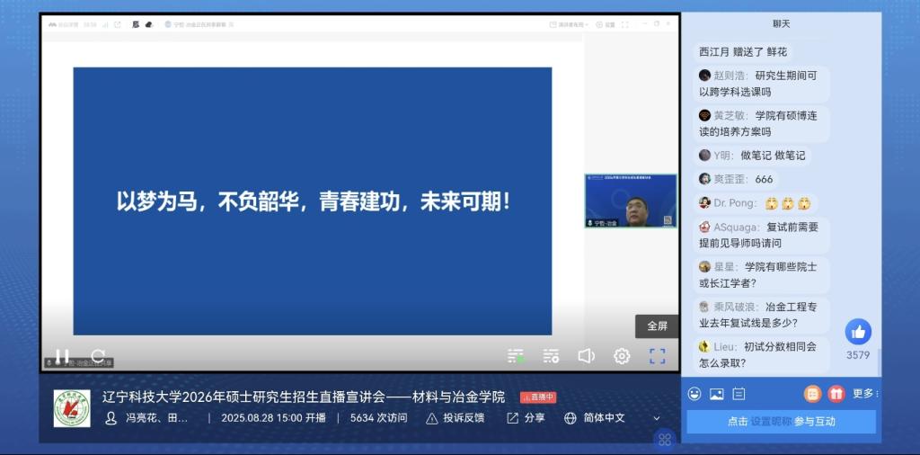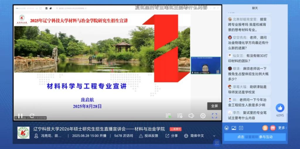 8月28日,米兰材料与冶金学院成功举办了2026年研究生招生线上直播宣讲会。本次宣讲会由学院副院长庞启航担任主持人。