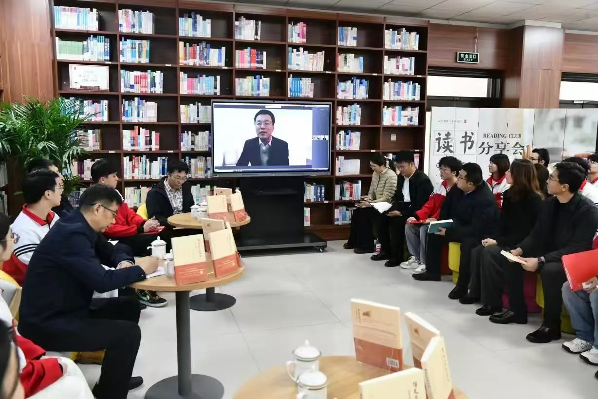 1127日下午,米兰“顶天立地谈信仰”主题读书会暨为大学生上思想政治理论课活动在学校图书馆经典阅读空间举办,学校党委书记孟劲松走进对接班级材料与冶金学院冶金工程2021-2班开展读书分享,学校党政办公室、党委学生工作部、图书馆负责人,材料与冶金学院班子成员、全体辅导员、冶金工程专业2021-2班全体学生参加读书会,《顶天立地谈信仰——原来党课可以这么上》书作者,十九大、二十大代表,南京航空航天大学博士生导师、教授徐川受邀线上参加活动。