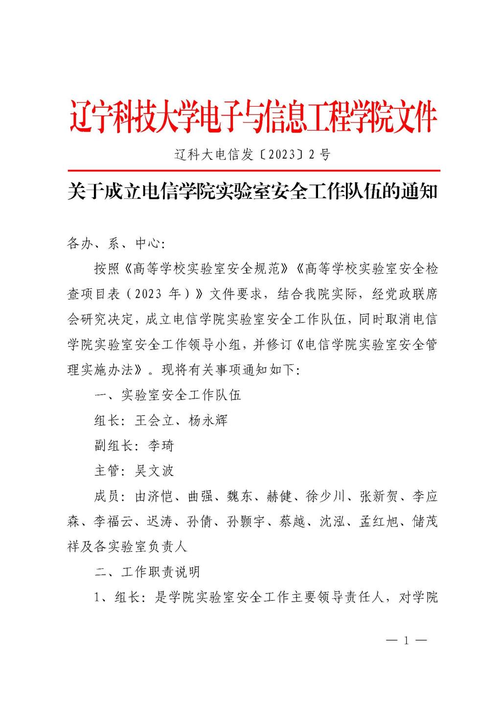 电信学院实验室安全工作队伍