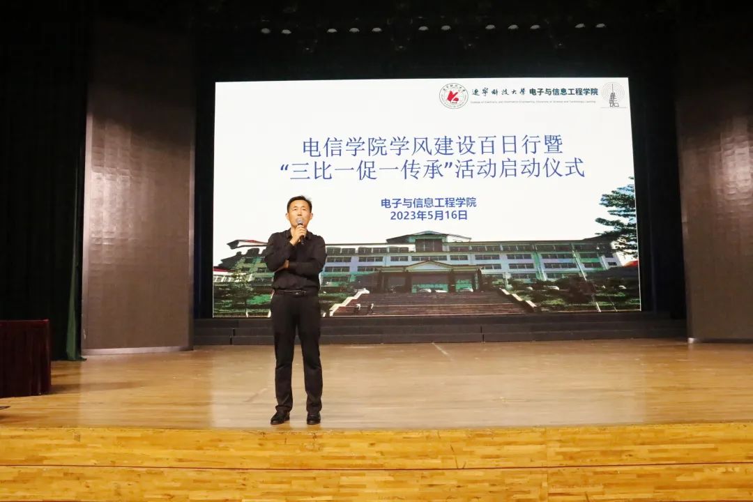 为深入学习贯彻习近平新时代中国特色社会主义思想,落实《米兰进一步加强内涵建设 服务辽宁全面振兴新突破三年行动方案》要求,加强学风建设和文化建设,营造良好的育人环境,5月16日,电信学院于校礼堂举行学风建设百日行暨“三比一促一传承”活动启动仪式,此次活动由电信学院党委书记王会立主持,电信学院21、22级全体学生参加。