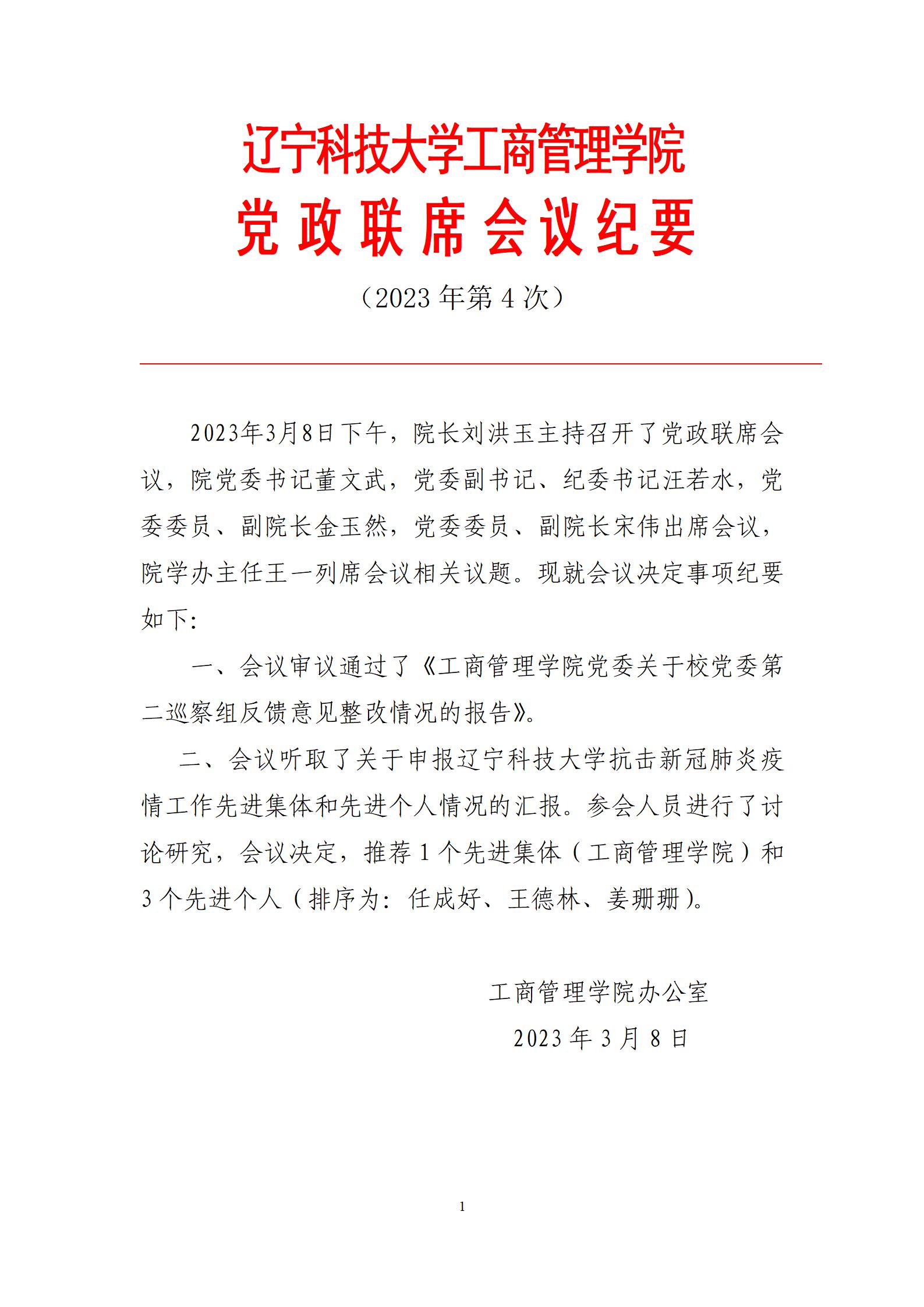 米兰工商管理学院党政联席会议纪要(2023年第4次)