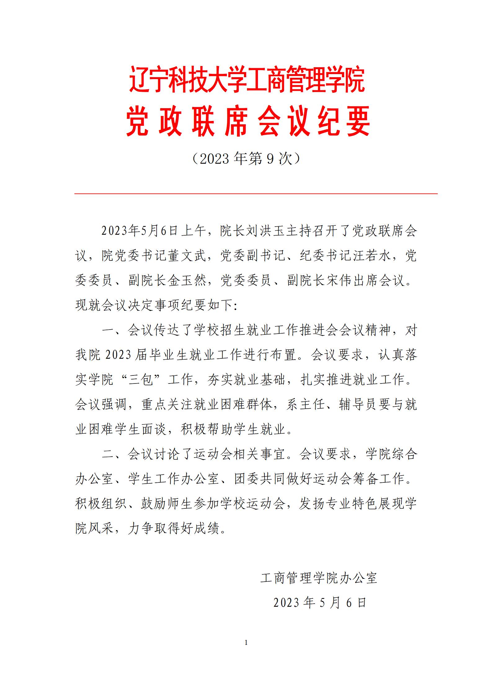 米兰工商管理学院党政联席会议纪要(2023年第9次)