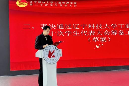 9月25日,工商管理学院第二十次学生代表大会在大学生活动中心圆满召开。本次大会由学院第十九届学生会办公室负责人李泽远主持,学院团委书记赵辉、第十九届学生会、分团委、新媒体中心全体成员与各年级学生代表共同参会。