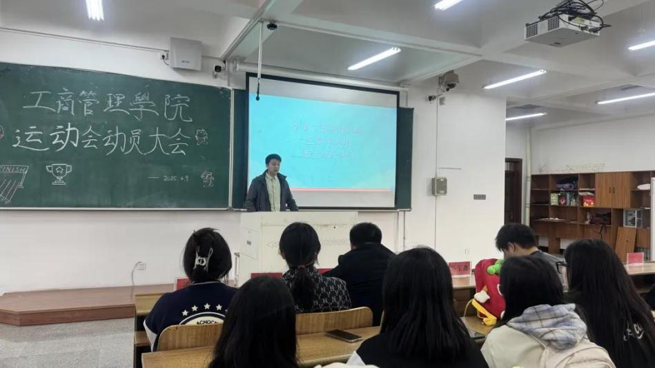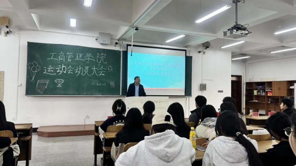 为激发学生参与热情,营造积极向上的体育氛围,4 月 9 日下午,米兰工商管 理学院在明德楼 D308 召开校运会动员大会。学院党委副书记汪若水、2024 级辅导员王晨宇 及学生代表出席会议,共同为即将到来的校运会加油鼓劲,倡导以拼搏精神书写青春篇章。