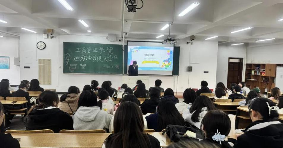动员会上,院学生会体育部姜雪琦从体育运动的价值切入,强调校运会不仅是竞技的舞 台,更是锤炼意志、凝聚团队的重要契机。她指出,参与体育赛事能有效促进学生身心协调 发展,培养“敢打敢拼、永不言弃 ”的精神品格,号召同学们以行动诠释“超越自我 ”的体 育内涵。学生会各部门通过图文讲解与往届赛事视频展播,生动呈现了径赛、田赛及团体项 目的规则与亮点。视频中管院学子挥洒汗水、团结协作的画面,点燃了现场学生的参赛热情, 掌声与欢呼声此起彼伏。