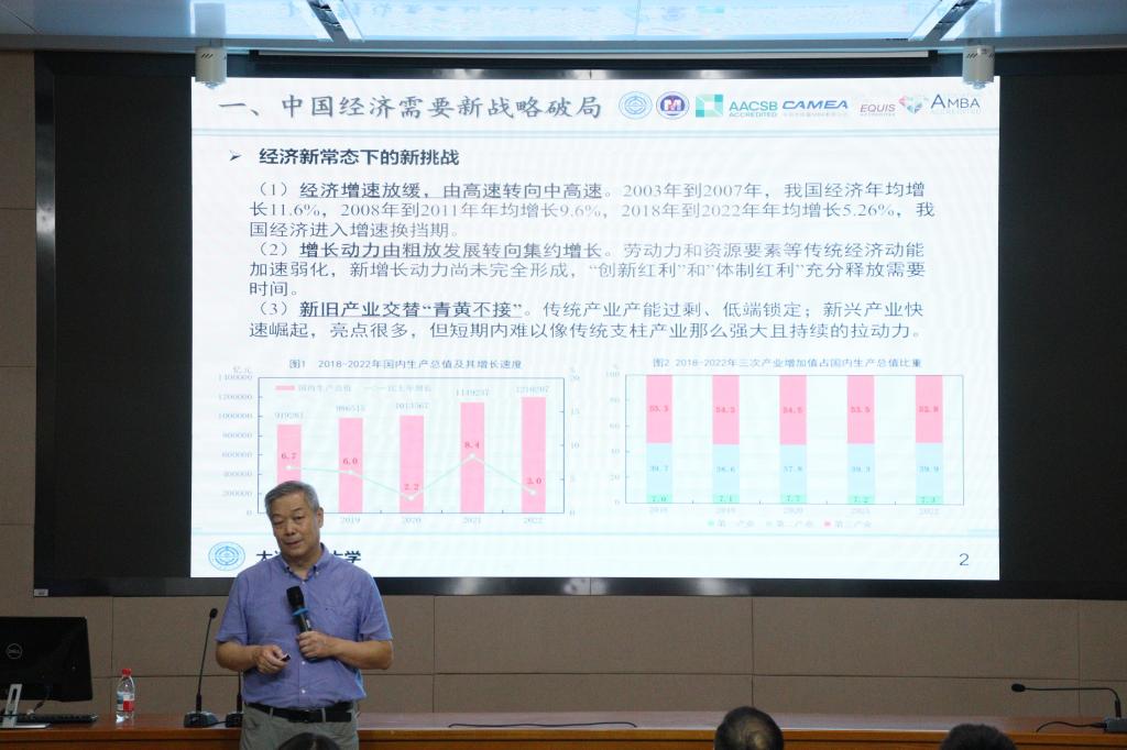 2025年8月30日,米兰工商管理学院迎来了一场思想盛宴——MBA2025级开学典礼暨“辽科智汇·匠心致远”企业管理大讲堂正式启动。首场报告特邀国家级领军人才、大连理工大学苏敬勤教授作题为《中国企业的高端化战略—从认知到行动》的专题演讲。讲座由工商管理学院院长金玉然教授主持,2025级全体MBA学员及部分教师参与本次论坛。