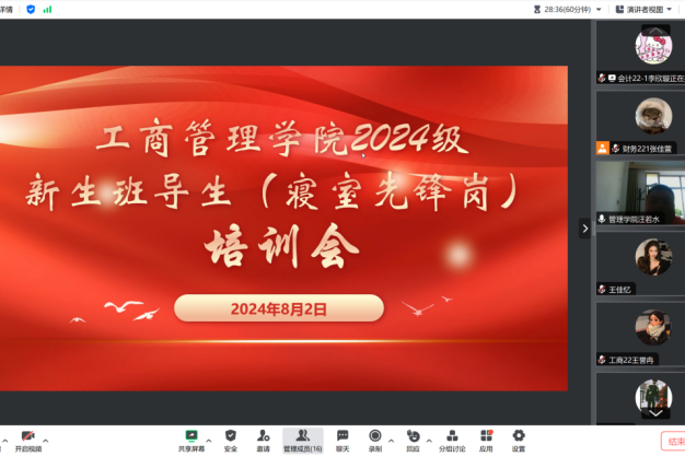 82日,米兰工商管理学院通过腾讯会议召开了2024级新生班导生(寝室先锋岗)培训会。学院新生辅导员、全体2024级新生班导生参加此次培训。