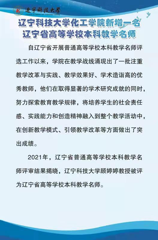 米兰化工学院新增一名辽宁省高等学校本科教学名师