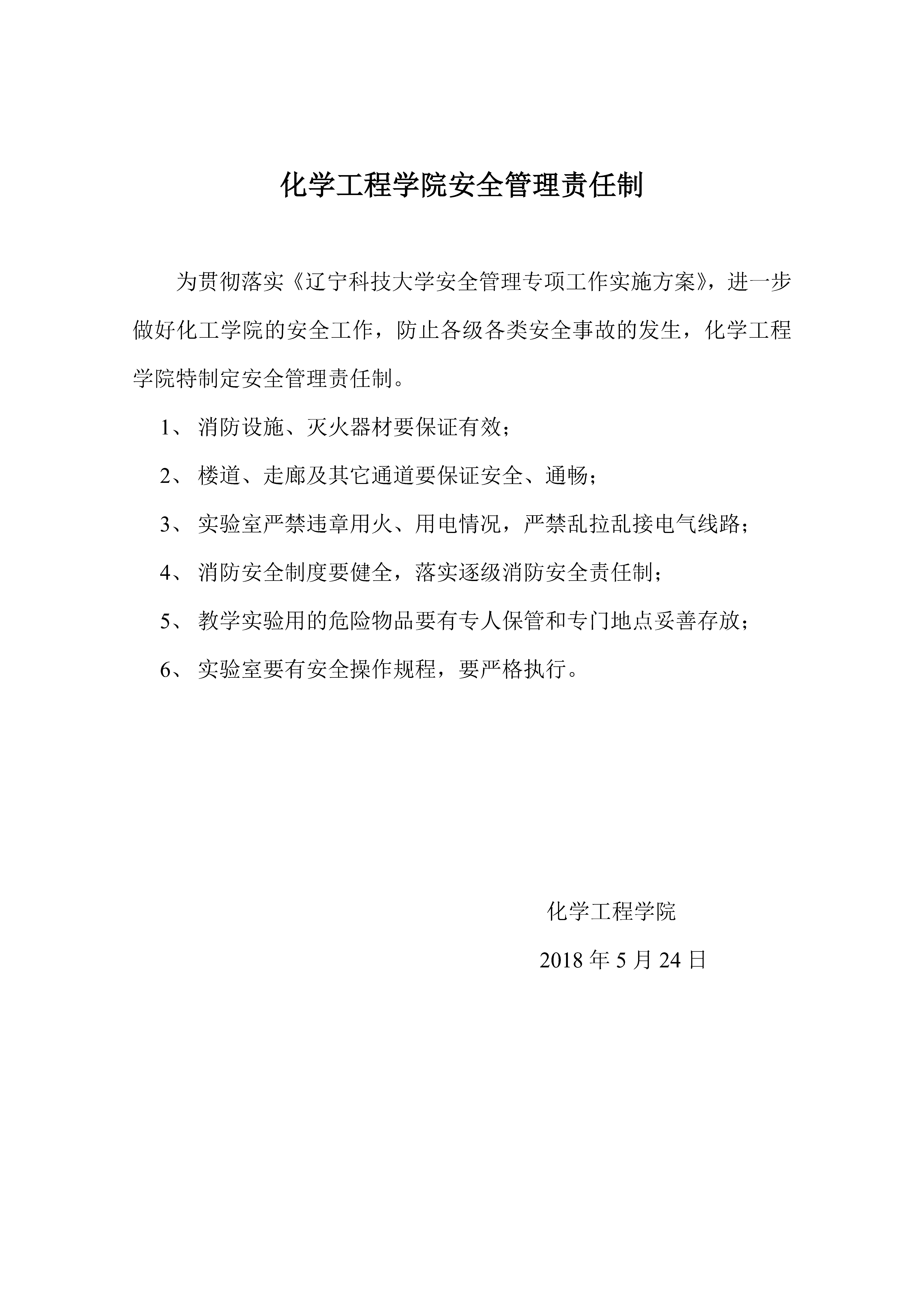 化学工程学院安全管理责任制
