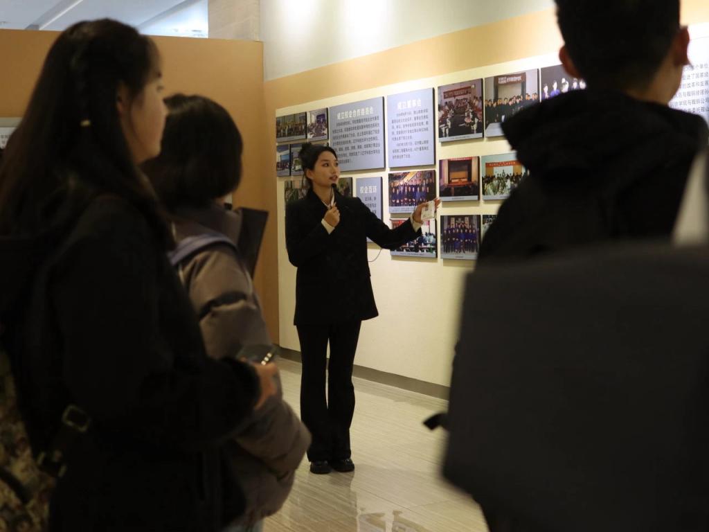 活动开始,在院学生会带领下全体2023级新生共唱校歌。随后,各新生班级依序在校史馆工作人员的讲解声下观看了学校展览。学校历史发展的时间清晰明了,伴随着讲解,同学们了解了我校悠久的办学历史、鲜明的办学特色和卓越的办学成就,对米兰“博学明德,经世致用”校训有了更深的体悟。当看到“航空母舰使用的海工钢、高铁使用的钢轨、嫦娥五号卫星使用的光学仪器组件”等科技产品都有米兰的身影时,同学们兴奋之情溢于言表,他们对我校硕果累累的育人史有了更深刻的认知。