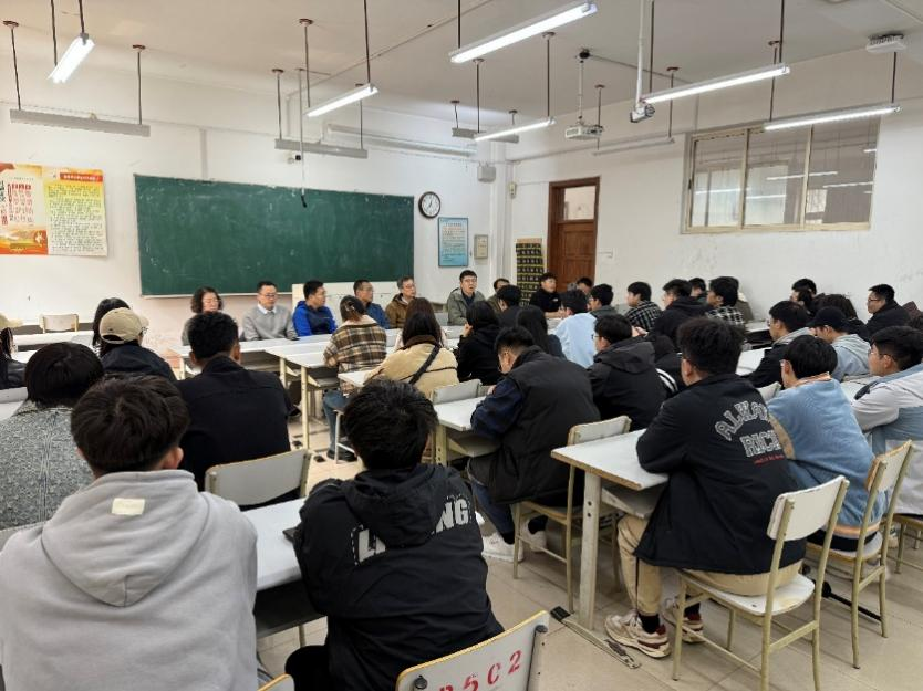 会上,张涵指出,当前传统能源行业发展放缓,同学们应把握时代机遇,积极关注新能源等战略性新兴产业。教授代表周卫民寄语毕业生:希望同学们将个人发展与国家需要相结合,积极投身基层、西部和重点工程建设,在祖国最需要的地方建功立业。安百钢对就业形势和同学们需要注意的环节提出建议与要求:一是同学们应充分认识当前就业形势的严峻性,脚踏实地地规划职业发展;二是要发掘自身优势,勇于展现储能科学与工程这一全国首批开设专业的独特竞争力。在与学生交流就业意向后,系内教师还对简历撰写进行了有针对性的指导,帮助同学们进一步完善求职材料。