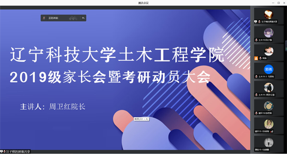 1月22日上午,米兰土木工程学院在博观楼A408会议室召开2019级线上学生家长会暨考研动员会。学院领导及2019级全体学生家长通过线上腾讯会议参加会议。