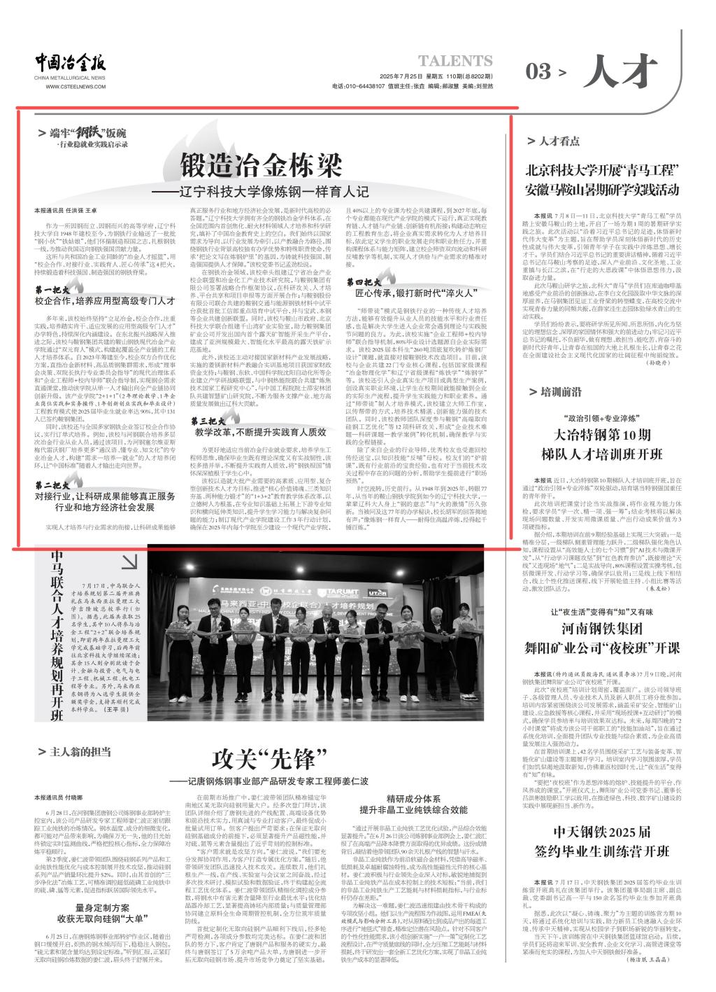 中国冶金报——锻造钢铁栋梁——米兰像炼钢一样育人记