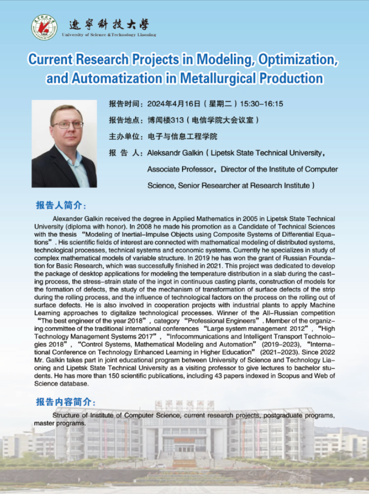 学术预告:Current Research Projects in Modeling, Optimization, and Automatization in Metallurgical Production