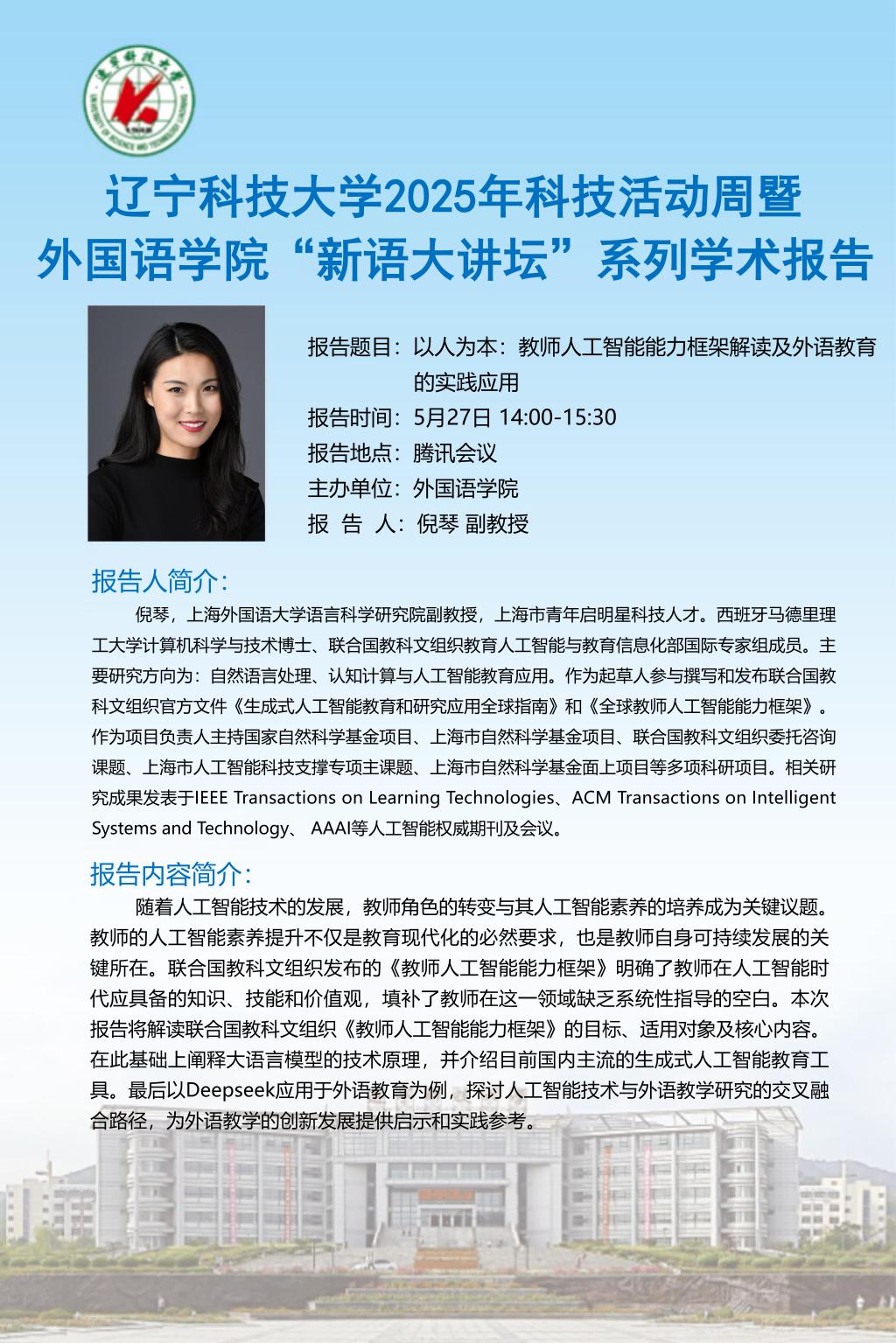 【科技活动周学术预告】以人为本:教师人工智能能力框架解读及外语教育的实践应用