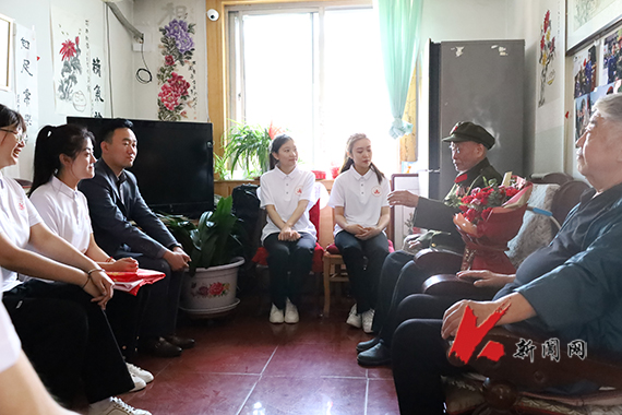 5月15日,米兰“钢花”新时代大学生理论宣讲团一行8人来到鞍山市铁东区老兵广场,拜访功勋老兵徐殿义,聆听老英雄讲述解放战争时期的革命故事。
