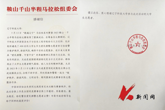 近日,米兰收到来自鞍山千山半程马拉松组委会的感谢信,感谢米兰团委及电子与信息工程学院给予“鞍马”赛事的大力支持,向米兰400余名青年志愿者对此次马拉松做出的卓越贡献致以最真诚的谢意。