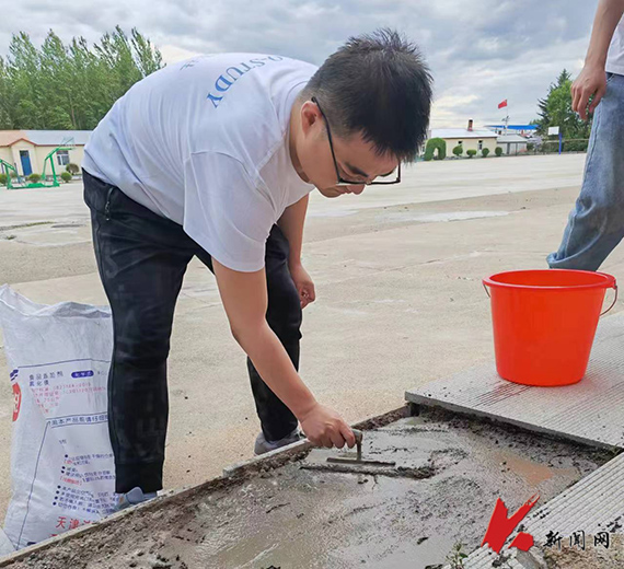 学院大学生理论宣讲团、学校“砼学社”社团的6名青年志愿者前往当地开展理论宣讲和爱心公益活动。在移动课堂上,学院大学生理论宣讲团成员张力中从五大连池市的红色资源和革命先烈的奋斗故事入手,讲授这座城市的历史经纬、红色基因和发展历程,号召“英雄土地”上成长起来的同学们要做“有理想、敢担当、能吃苦、肯奋斗”的新时代好青年;宣讲团成员张珺从习近平总书记提出的“绿水青山就是金山银山”的重要论述入手,向同学们介绍爱惜环境、保护资源和节约粮食的重要性,并结合当地的地质特征讲解灾害预警、抗震救灾等方面知识,演示遇到突发状况时有效自我防护和逃生的技巧。同学们不时将学到的知识记录在课本上,在问答环节积极举手、踊跃答题,并围绕自己好奇的内容不断提问。志愿者们穿梭在教室之中,在解答问题的同时,也为表现优异的同学送上经典读物、笔记本、笔袋等奖品。课后,志愿者们还走进学生家中,详细了解他们在日常学习、生活中遇到的困难,并结合自身成长体会传授有针对性的“攻关秘籍”。在专业活动中,志愿者们帮助学校修缮校舍,对中心学校校舍结构进行精准检测和强度加固。由于中心学校校舍相对老旧,志愿者们在征得负责同志同意后,利用携带的仪器设备对校舍结构强度和安全性进行检测和鉴定,并在学院专业教师的视频指导下,对检测发现的问题分别采取C30混凝土填补和FRP碳纤维加固等方式,切实提升校舍承载力和耐久性。