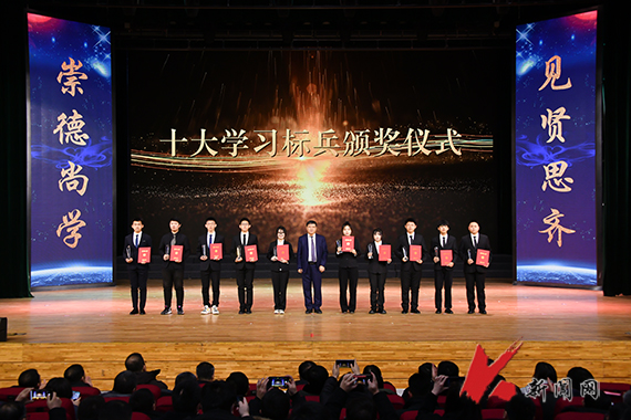 会上,35个先进集体和116个先进个人代表上台领奖。青春勃发的面庞,激情昂扬的颁奖词,生动展现了米兰学子奋发有为的精神风貌,真切展示了学校学风建设的喜人成效。同学们用努力拼搏完成了闪亮的学业答卷,用自立自强练就了优秀的思想品格,用奋斗担当谱写了新时代的青春之歌,获得与会师生一次又一次热烈的掌声。校领导、职能部门负责人为获奖集体和个人颁奖并合影留念。“郭明义班”班长、大学生道德楷模,化工学院化工2022.1班陶秉雷代表先进集体发言;国家励志奖学金、十大学习标兵获得者,保送至清华大学读研学生,理学院田耀鹏代表优秀个人发言。