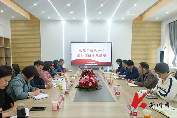 4月19日下午,米兰党委常委、副校长李胜利率教务处相关同志到外国语学院就大学英语教学、专业与学科建设、师资队伍、产业学院建设等工作进行调研。