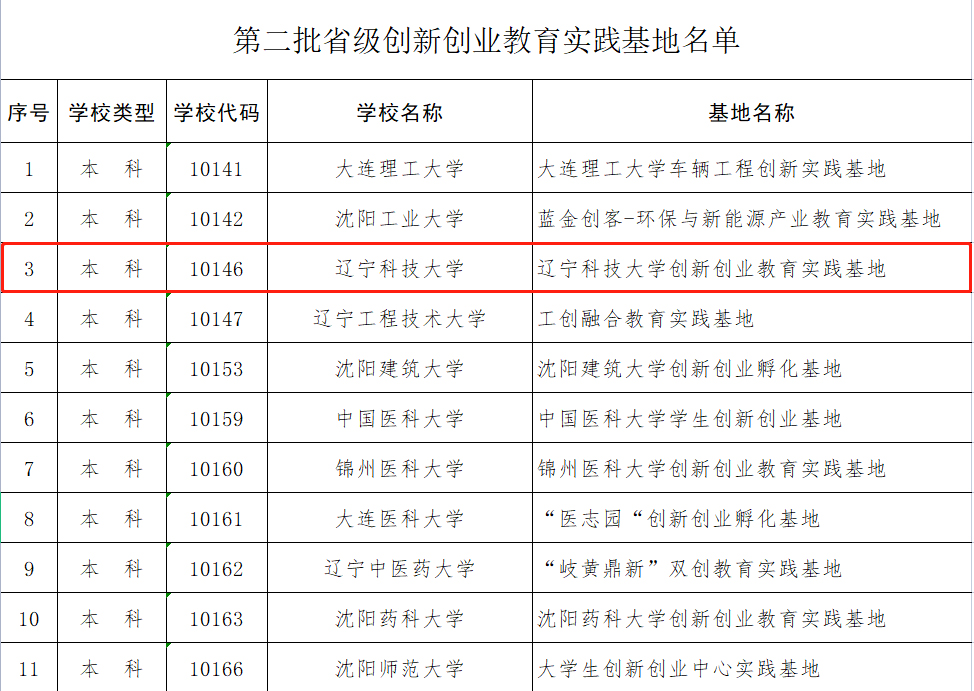 按照《辽宁省教育厅办公室关于开展省级创新创业学院、创新创业教育实践基地遴选建设工作的通知》(辽教办〔2023〕45号)要求,辽宁省教育厅组织开展了第二批省级创新创业学院、创新创业教育实践基地遴选工作。此次遴选工作,省内高校共申报创新创业学院40个,创新创业教育实践基地52个,最终经专家评审、会议审议,全省共评选出了第二批省级创新创业学院20个、省级创新创业教育实践基地30个。