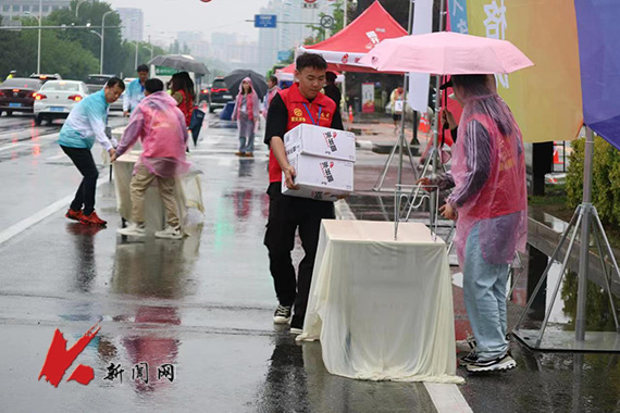 13日凌晨4时30分,志愿者们就已经集合完毕,在有序的组织安排下,分别乘坐爱民拥警转运公交车提前到马拉松达赛道沿途道路两侧,开始了紧张忙碌的准备工作。比赛当天,志愿者们有条不紊地协助警务人员维持秩序,确保赛道的畅通以及赛事的顺利进行。从烈士山正门运动员检录处封闭区,到玉佛苑迷你马拉松终点,一直到学校正门,马拉松沿线赛道两侧的公路两侧,志愿者们身着“爱民拥警的红马甲”和警察并肩携手维护秩序,劝导围观行人文明通行,守望平安的忙碌身影,米兰学子始终以实际行动付出,默默为马拉松助力,为参赛者加油。他们不计回报,毫无怨言,赛事开始前,由于天气原因下起了雨,雨水不仅影响了比赛场地,也加大了志愿者们进行服务的难度。尽管如此,志愿者们依旧认真用心对待,在雨中用最贴心的服务和真诚的微笑为选手喝彩加油,诠释了无私奉献、团结有爱的志愿者精神,获得了一致好评。