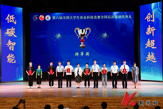 白晨光宣读了决赛结果,并对本届竞赛进行了精彩点评。他代表全体评审专家和参赛师生,对主办单位、承办单位、技术支持单位的精心组织,各位评审专家的辛苦付出和全体参赛师生的精彩表现表示衷心感谢。材料与冶金学院副院长艾新港宣读了第六届全国大学生冶金科技竞赛的获奖名单。出席典礼的领导与嘉宾分别为获奖队伍及高校代表颁奖。中南大学乔晋玺同学作为获奖选手代表分享了个人感悟。