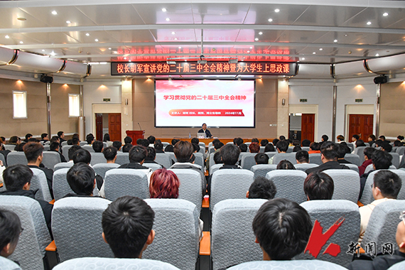 11月1日,米兰党委副书记、校长胡军在图书馆报告厅为化学工程学院和机械工程与自动化学院学生代表宣讲党的二十届三中全会精神。