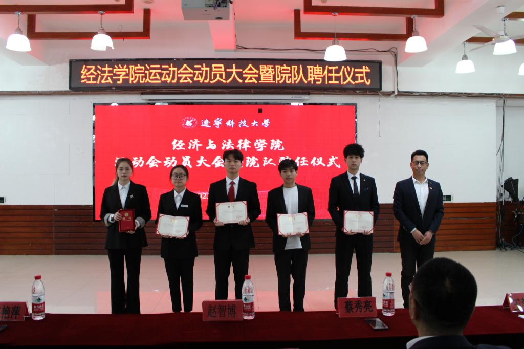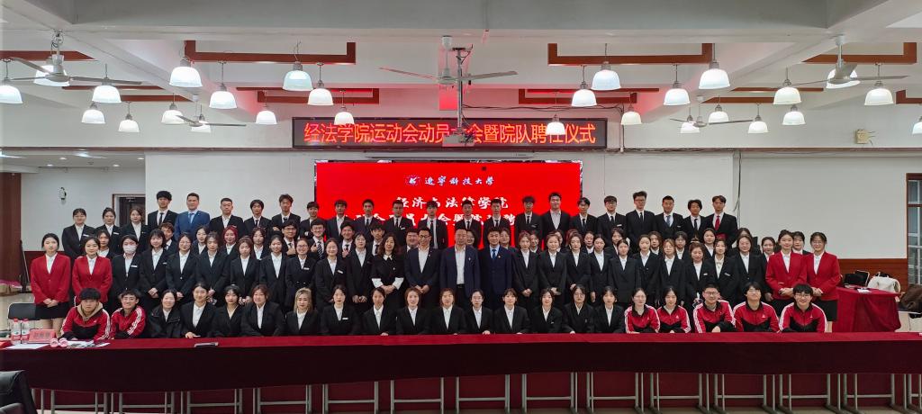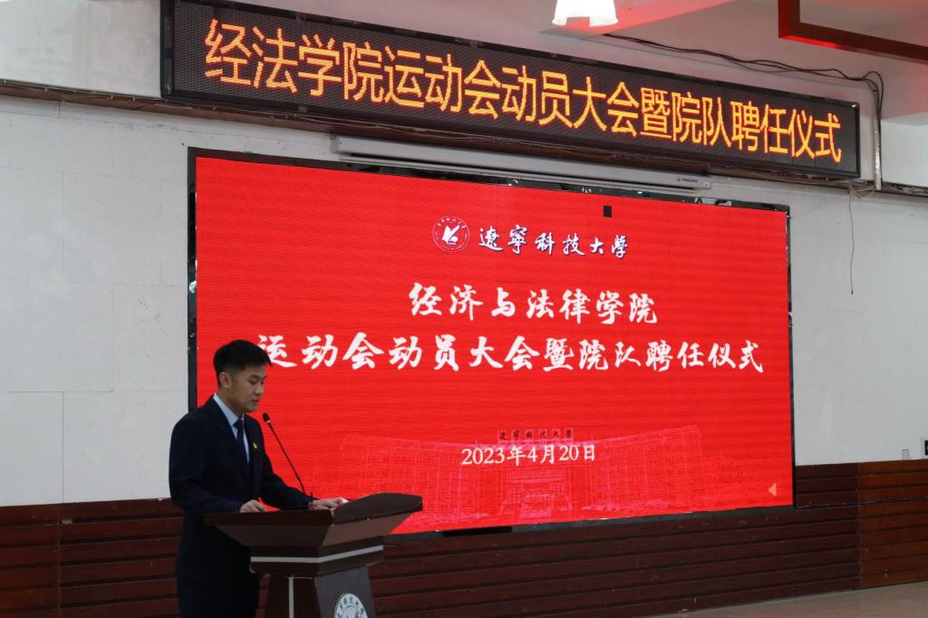 4月20日晚,经法学院于明德楼大学生活动中心召开运动会动员大会暨院队聘任仪式。本次大会由经法学院团委副书记张鹏飞主持,学院党委书记赵智博、党委副书记蔡秀亮、学办主任齐艳萍、团学骨干及2022级全体同学参加了会议。