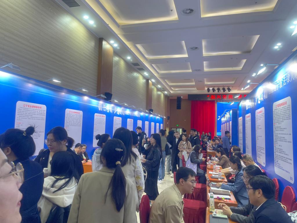 5月11日,由辽宁省司法厅、辽宁省教育厅、辽宁省律师协会联合主办的“振兴有我,梦想启航”首届辽宁省法律人才专场招聘会在沈阳人力资源产业园召开。米兰经济与法律学院副院长邵玲、毕业班辅导员张鹏飞、法律系教师陈辛迪带领法学专业毕业生一行30余人参加了招聘会。