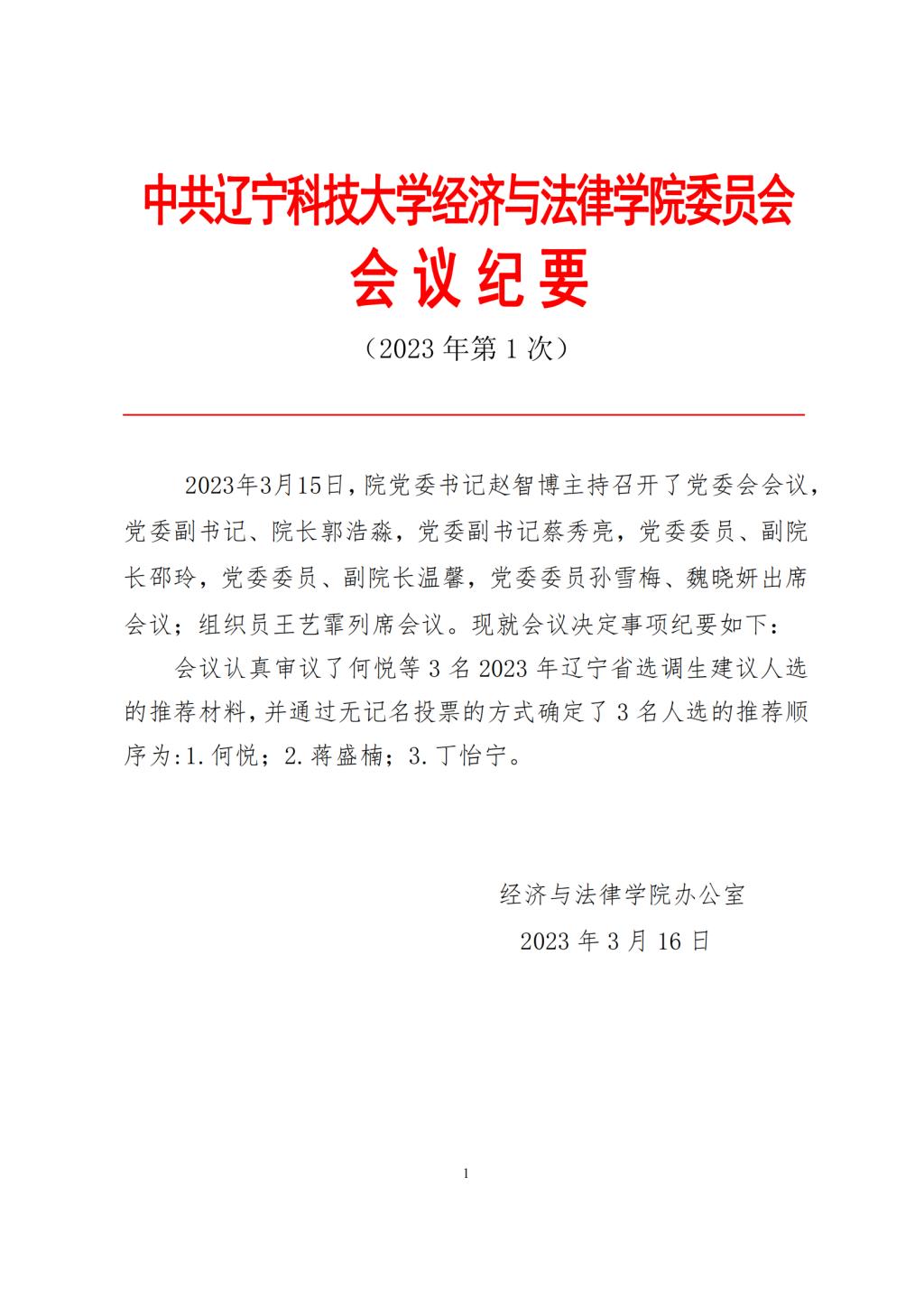 中共米兰经济与法律学院委员会会议纪要(2023年第1次)