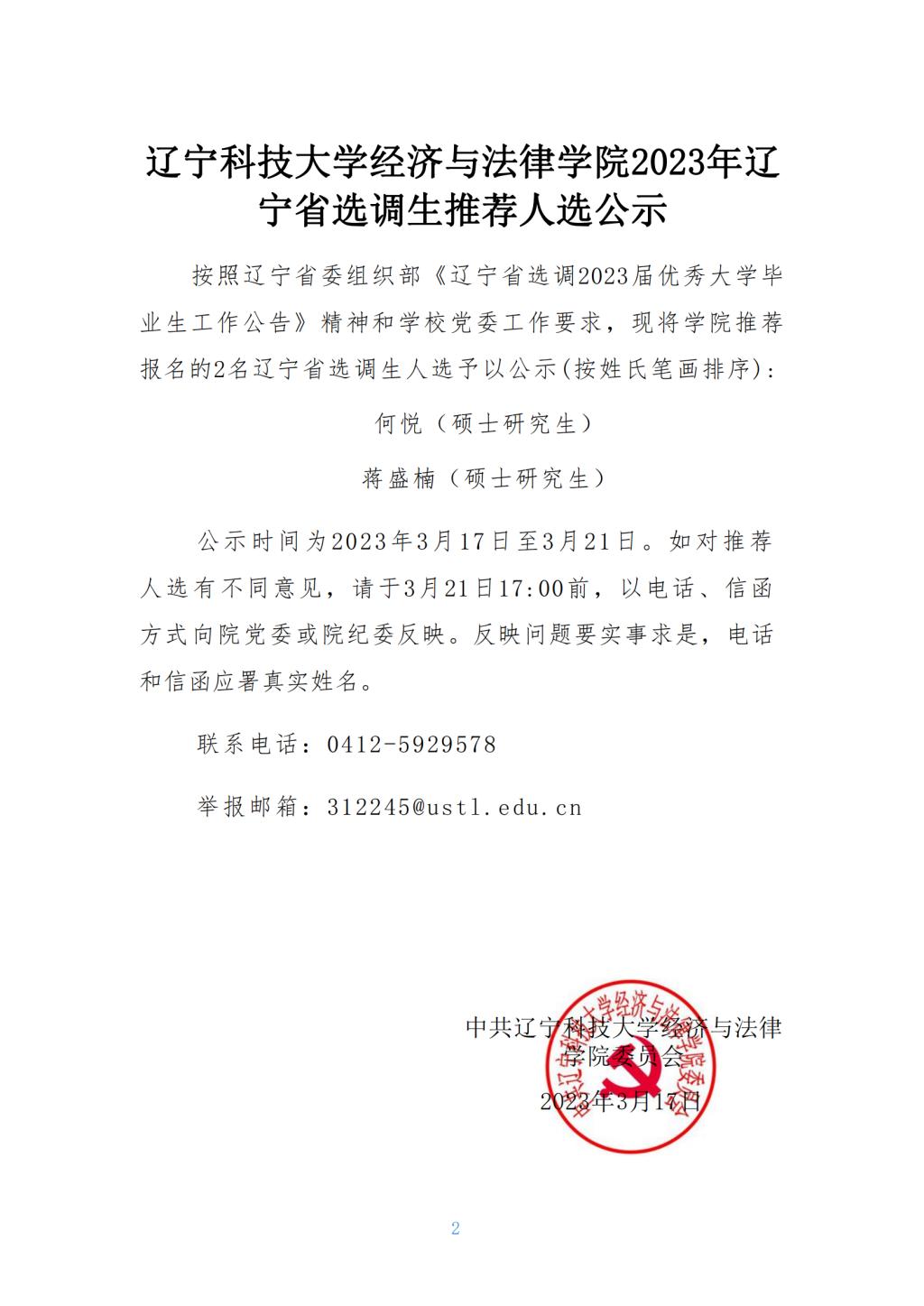 米兰经法学院2023年辽宁省选调生推荐人选公示
