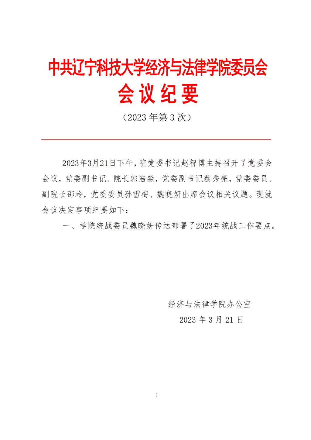 中共米兰经济与法律学院委员会会议纪要(2023年第3次)