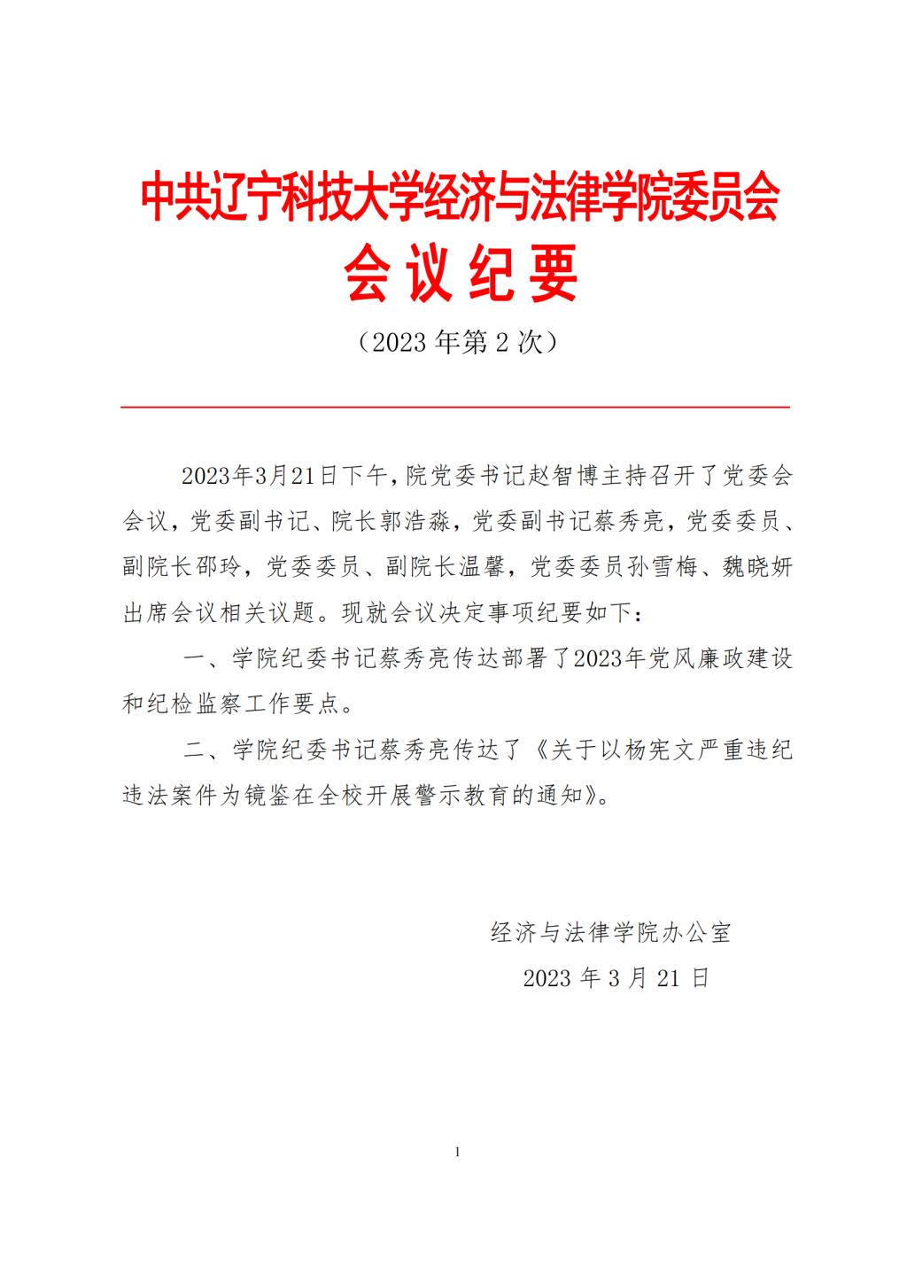 中共米兰经济与法律学院委员会会议纪要(2023年第2次)