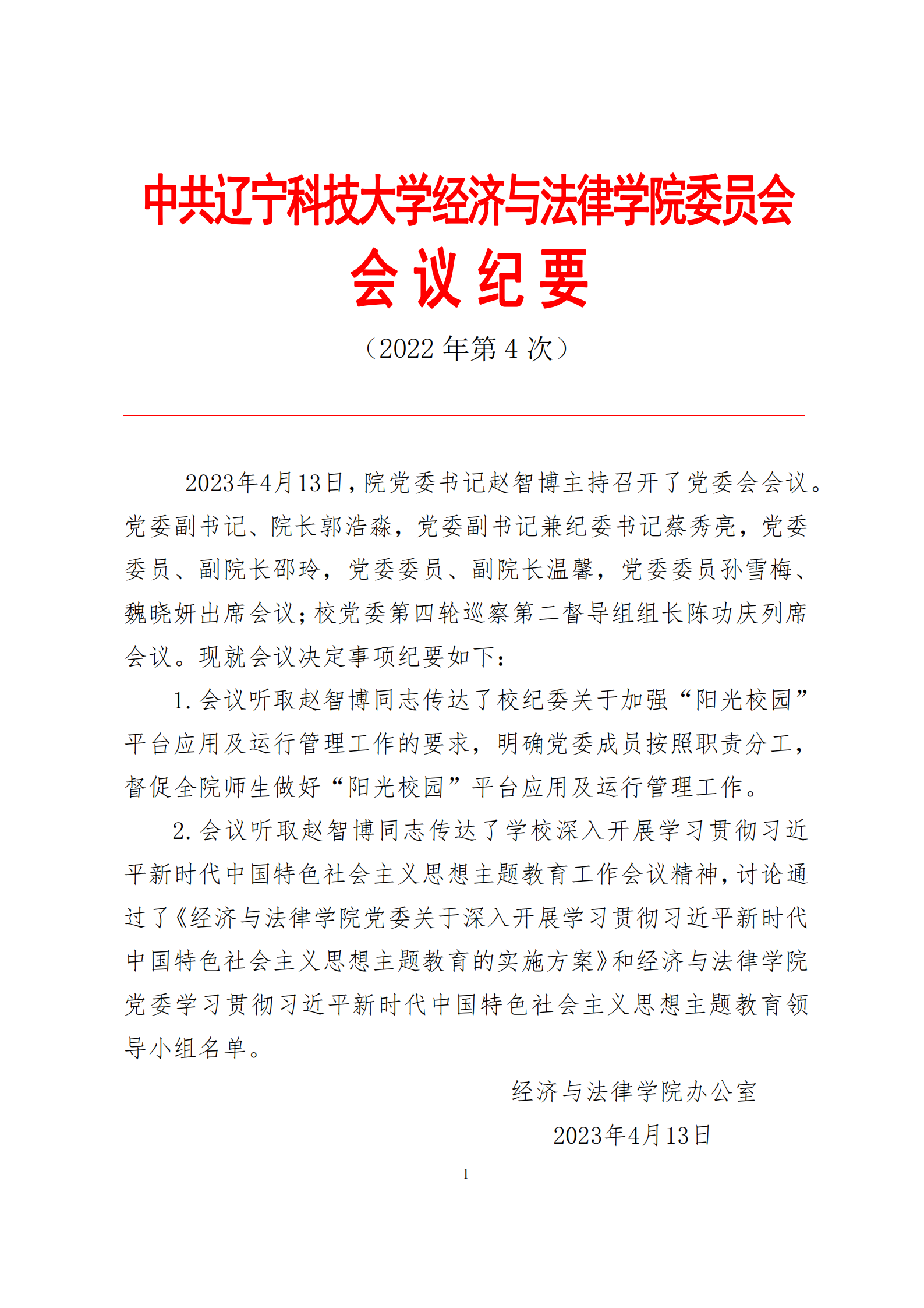 中共米兰经济与法律学院委员会会议纪要(2023年第4次)
