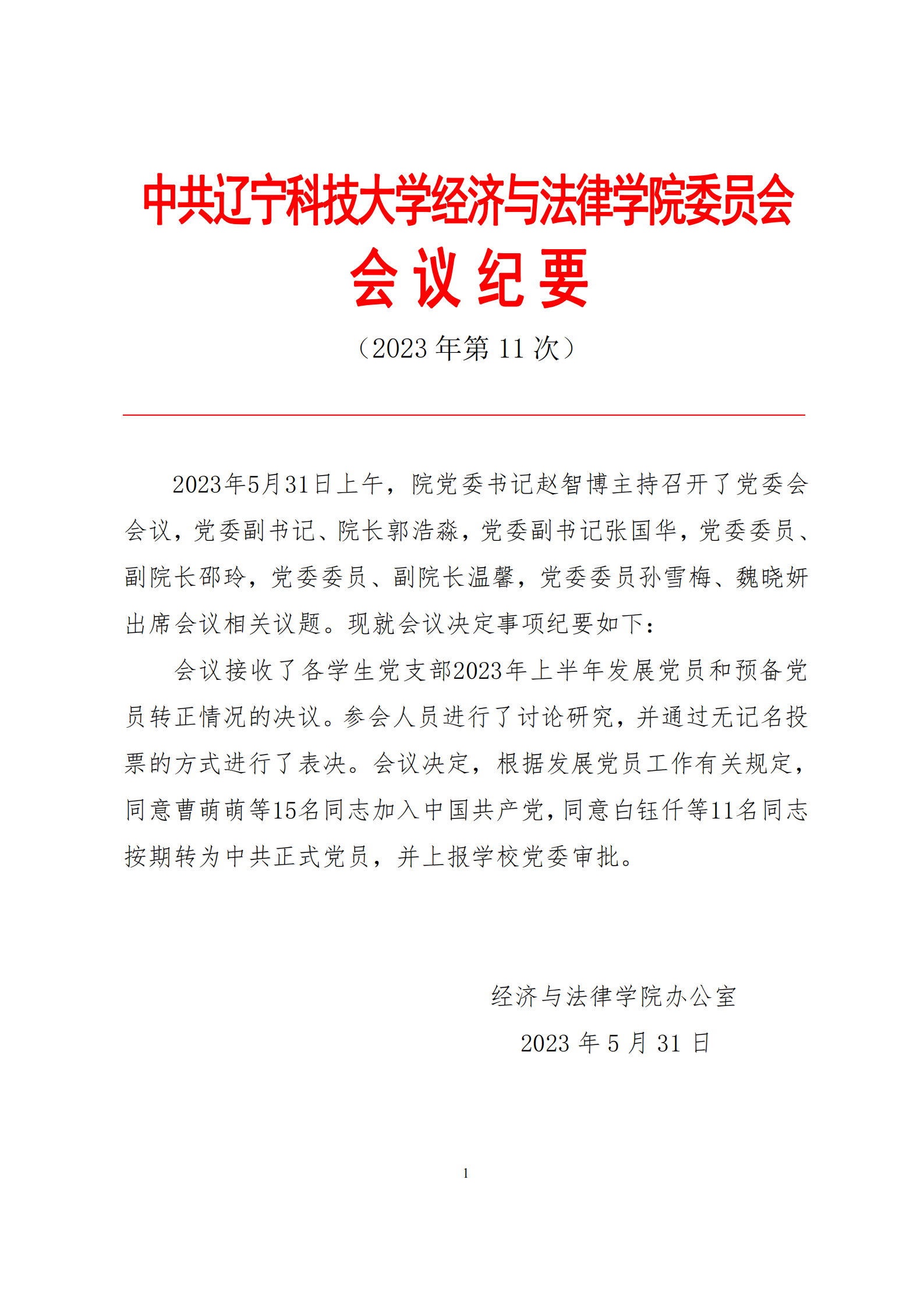 中共米兰经济与法律学院委员会会议纪要(2023年第11次)