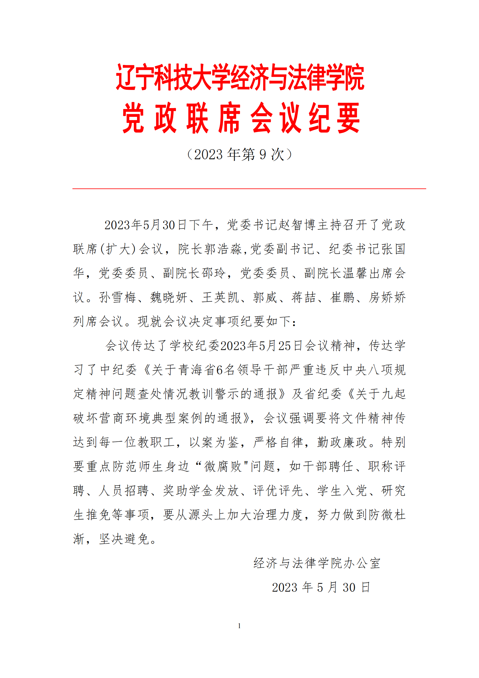 米兰经济与法律学院党政联席会议纪要(2023年第9次)