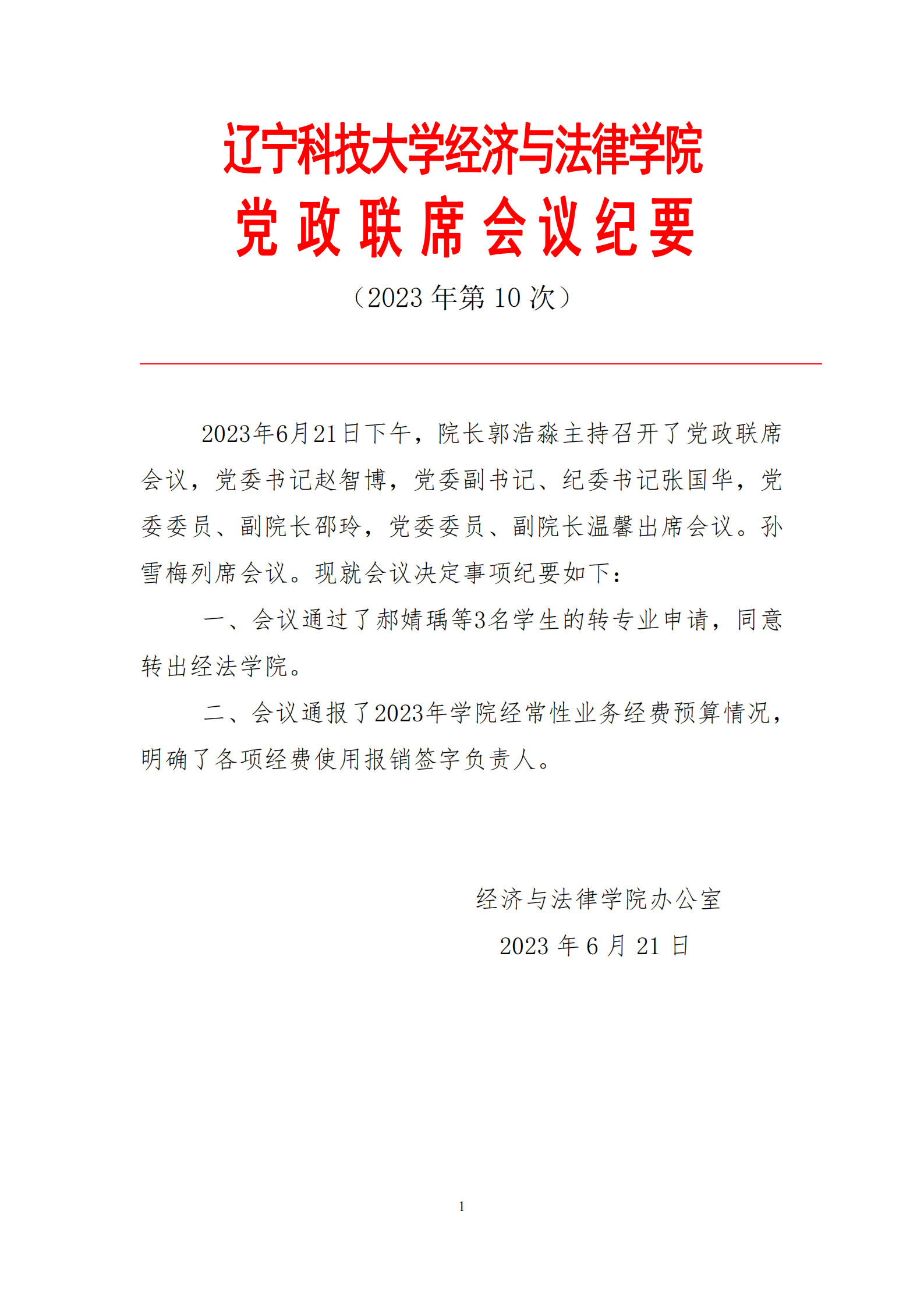 米兰经济与法律学院党政联席会会议纪要(2023年第10次)