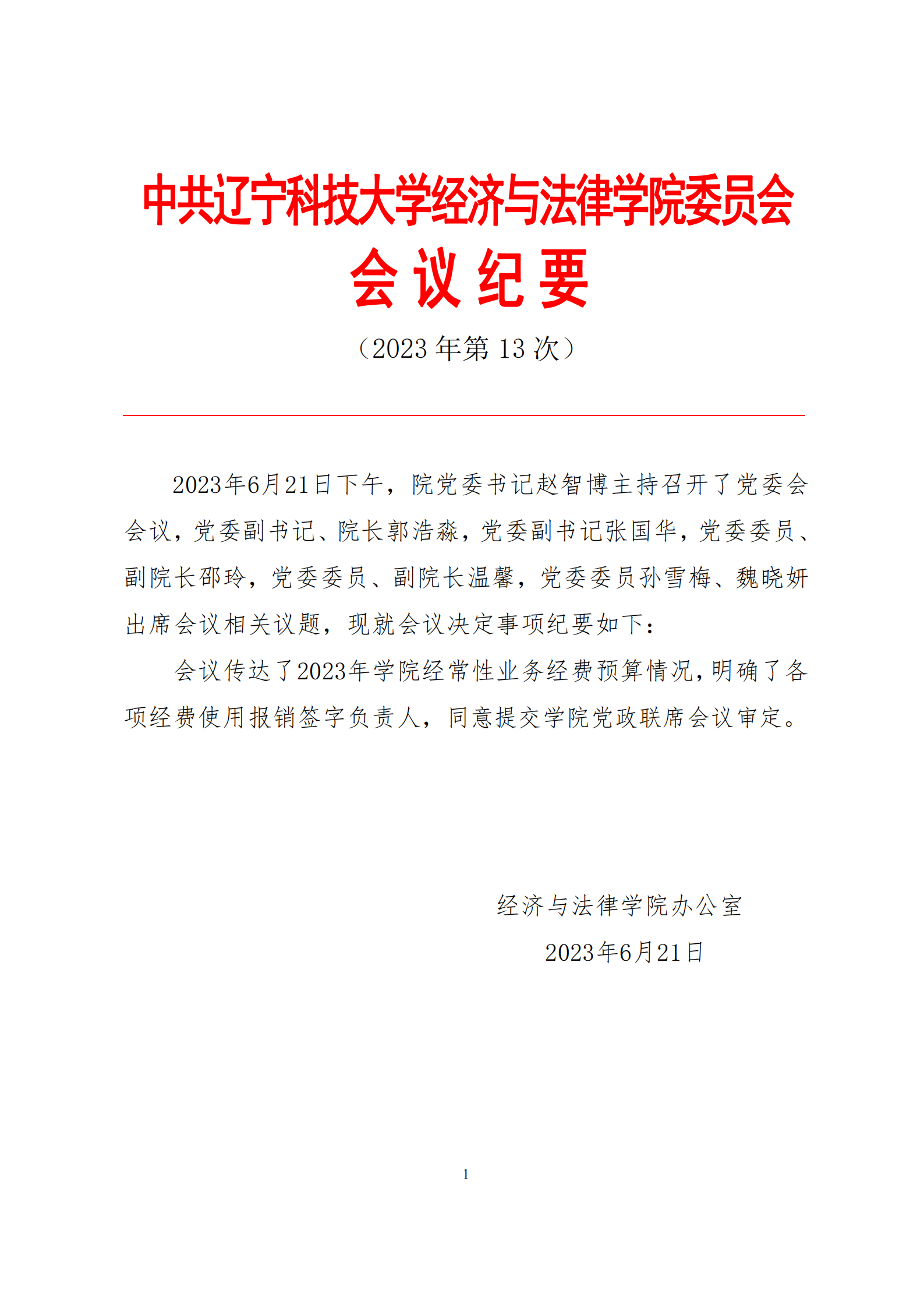 中共米兰经济与法律学院委员会会议纪要(2023年第13次)