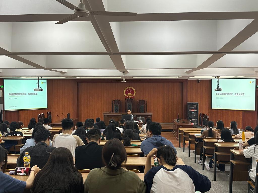 6月4日,经法学院于明德楼A214开展“数据权益保护的现状、探索与展望”主题讲座,旨在深入剖析当前数据权益保护的现状,探讨其未来发展方向。此次讲座由陈辛迪老师主持,美团集团政策与法律研究院高级研究员王会战受邀主讲,经法学院党委书记赵智博、副院长邵玲、法学专业全体本科生及23级全体法律硕士研究生参加。