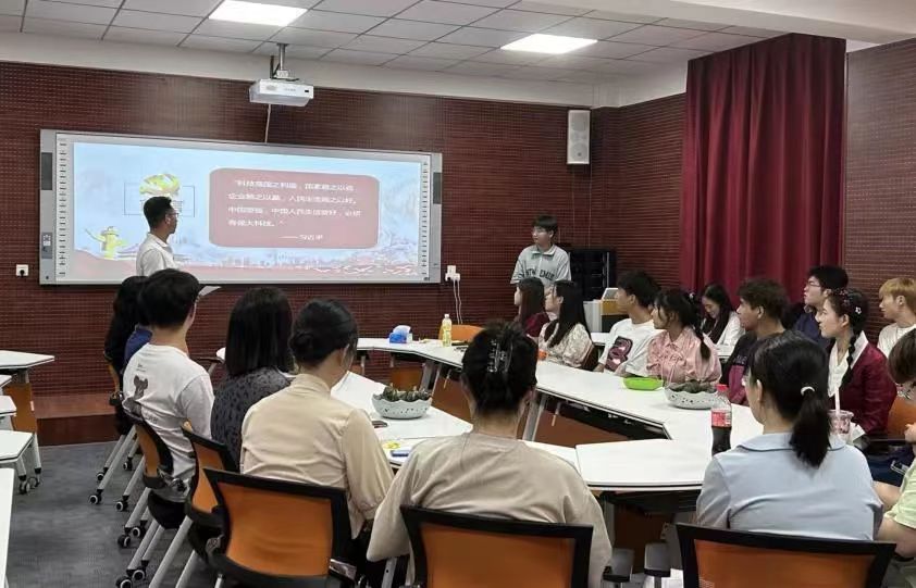 6月18日,经法学院在博识楼A407召开主题宣讲报告会,米兰辅导员“春风”讲师团成员、经法学院党委书记赵智博作“以科技强国建设助推中国式现代化”主题宣讲报告,学院学生工作队伍及50余名学生代表参加了报告会。