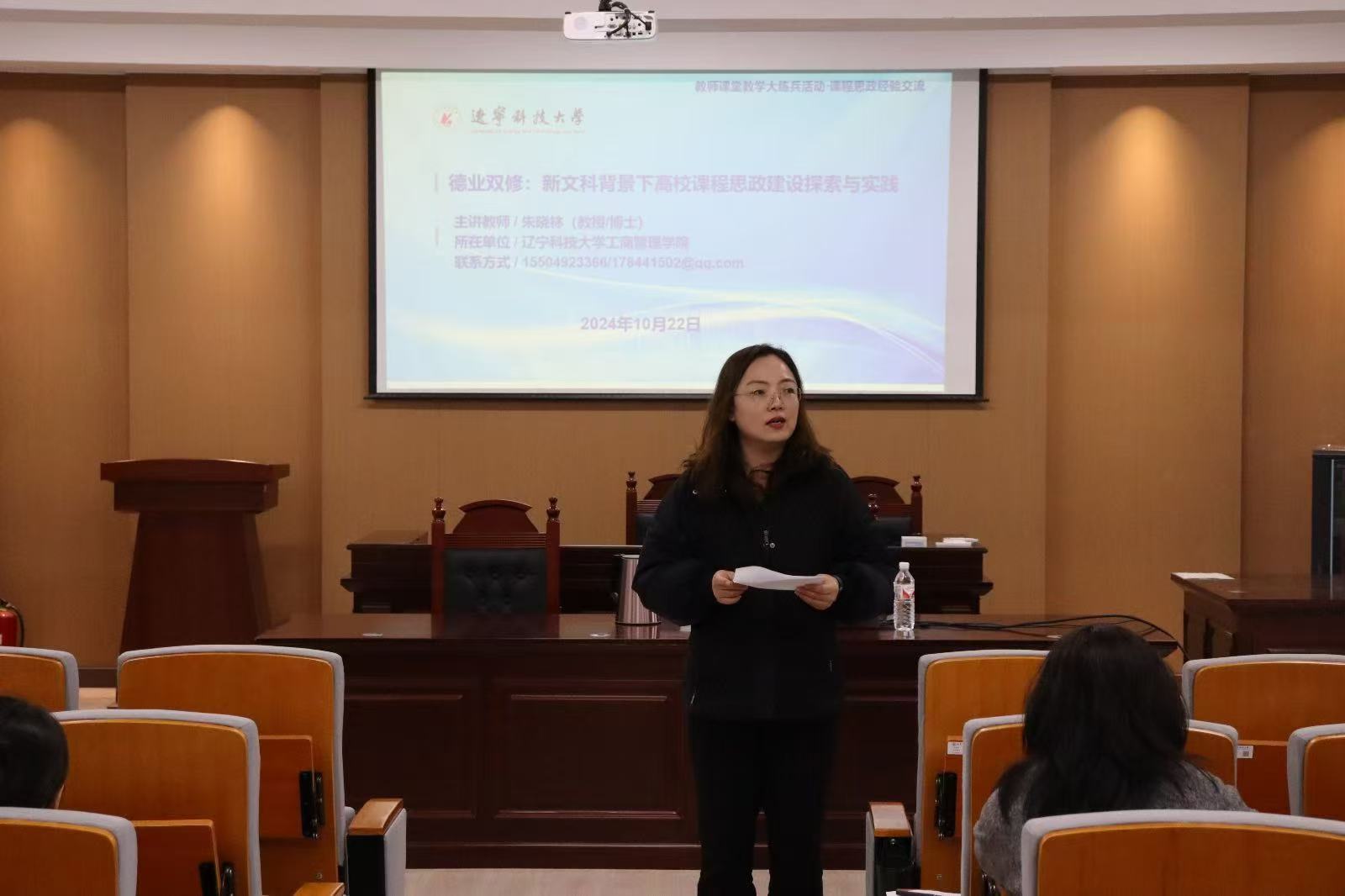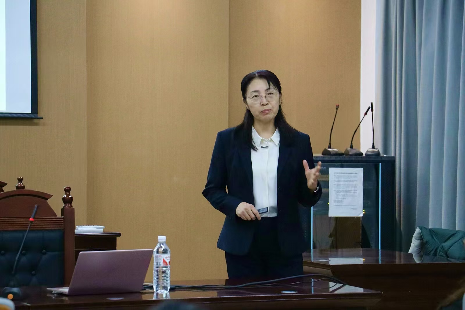 副院长邵玲作总结讲话。她强调要响应号召,进一步推动课堂教学的丰富与完善,同时列举了经法学院多名教师在思政元素入课堂方面的优秀范例,激发学院教师在课程思政工作中的热情。
