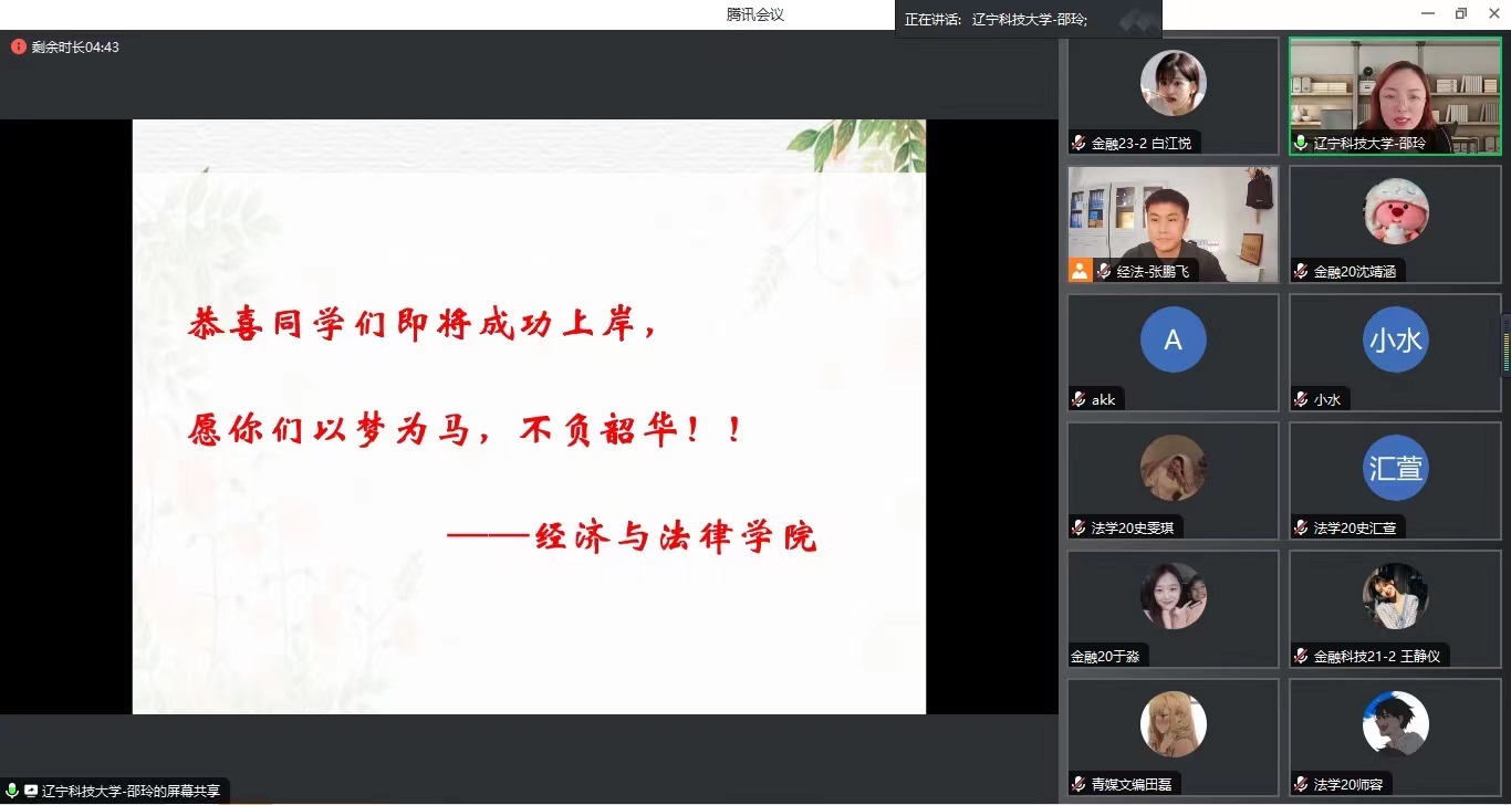 3月23日,经法学院于腾讯会议APP线上召开2024届毕业生考研复试培训会。会议由学院团委副书记、毕业班辅导员张鹏飞主持,会议邀请学院副院长邵玲担任主讲人,学院20名考研学子参加了会议。