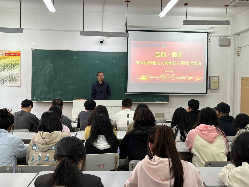 班会伊始,学院2024届毕业班辅导员张鹏飞回顾了同学们在校期间的成长变化,肯定了他们勤奋好学、积极进取的学习和生活状态,并就毕业生考研、就业等未来发展问题进行了交流和解答。他表示,希望毕业生们在未来的工作和生活中能够继续发扬昂扬向上的精神,热爱母校,以校为荣,为社会做出更大的贡献。张鹏飞强调了文明离校的重要性,并通过讲解相关政策和规定,引导毕业生们以文明、有序的方式告别母校。他详细阐述了保持宿舍卫生、爱护公共设施、遵守交通规则等方面的具体要求,表示希望毕业生们能够以身作则,为学弟学妹们树立良好的榜样。随后,张国华作总结发言。他向即将离校的毕业生们表达了深深的祝福和美好的期望,并强调,文明离校不仅仅是一种形式,更是一种责任和担当,希望毕业生们能够以实际行动践行文明离校的理念,将母校的美好传统和精神风貌传承下去。张国华鼓励毕业生们时刻保持感恩之心,感谢母校的培养和关怀,感谢老师们的辛勤付出和教诲,同时在未来的工作和生活中注重自我提升和成长,不断学习和进步,勇于创新和突破,努力实现自己的人生价值。最后,班会在一片温馨、和谐的气氛中圆满结束。毕业生们纷纷表示,在此次班会中感受到了母校的温暖和关怀,通过班会更加坚定了对未来的信心,收获了继续努力拼搏奋斗的动力,并表示未来将以更加饱满的热情和更加坚定的步伐迈向新的人生阶段,为实现自己的梦想而努力奋斗。