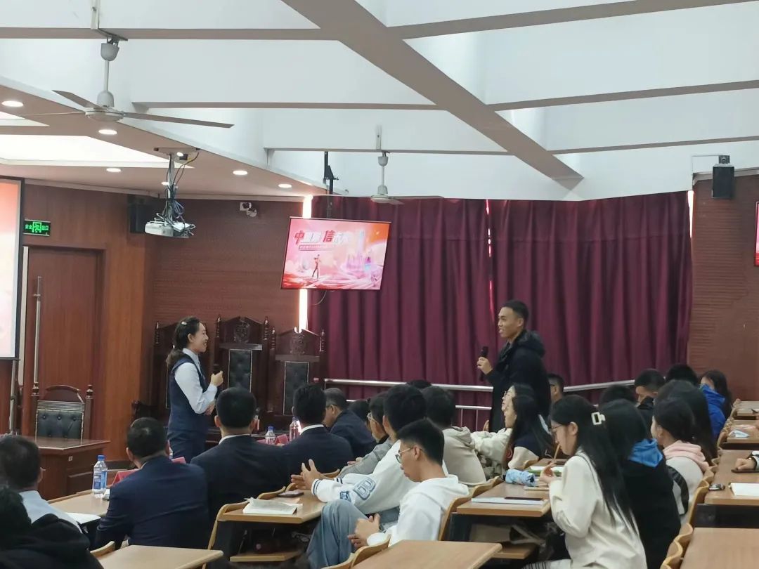 10月18日下午,经法学院邀请中信银行鞍山分行于明德楼A214开展校园招聘宣讲会。本次宣讲会由经法学院党委书记赵智博主持,中信银行鞍山分行一行6人、经法学院党政领导及辅导员5人出席会议,经法学院近100名2024届毕业生参会。